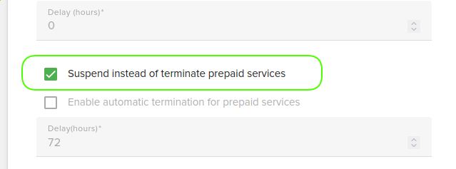 In Configurations, there are now two “Suspension instead of termination” settings available, one for Postpaid services and one for Prepaid services.