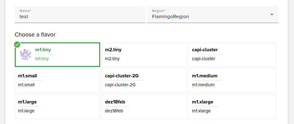 When editing a flavor, users can now upload a logo icon for the flavor, which will be displayed on the instance creation form. This improves usability when multiple flavors are available.