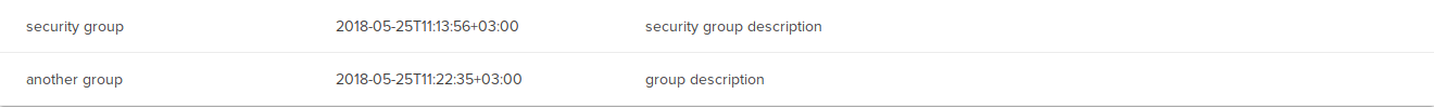 When you access this page a list of existing security groups are displayed in card or table format: