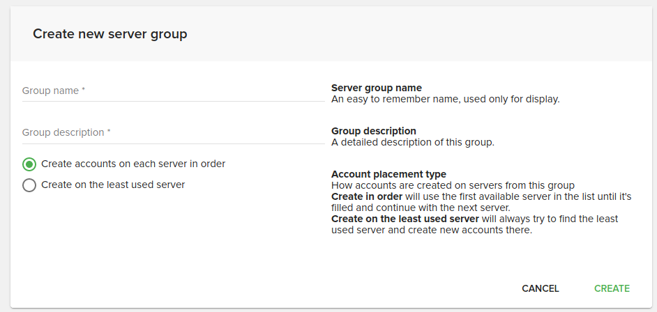 This group will hold cPanel servers on which new shared hosting accounts will be created.
