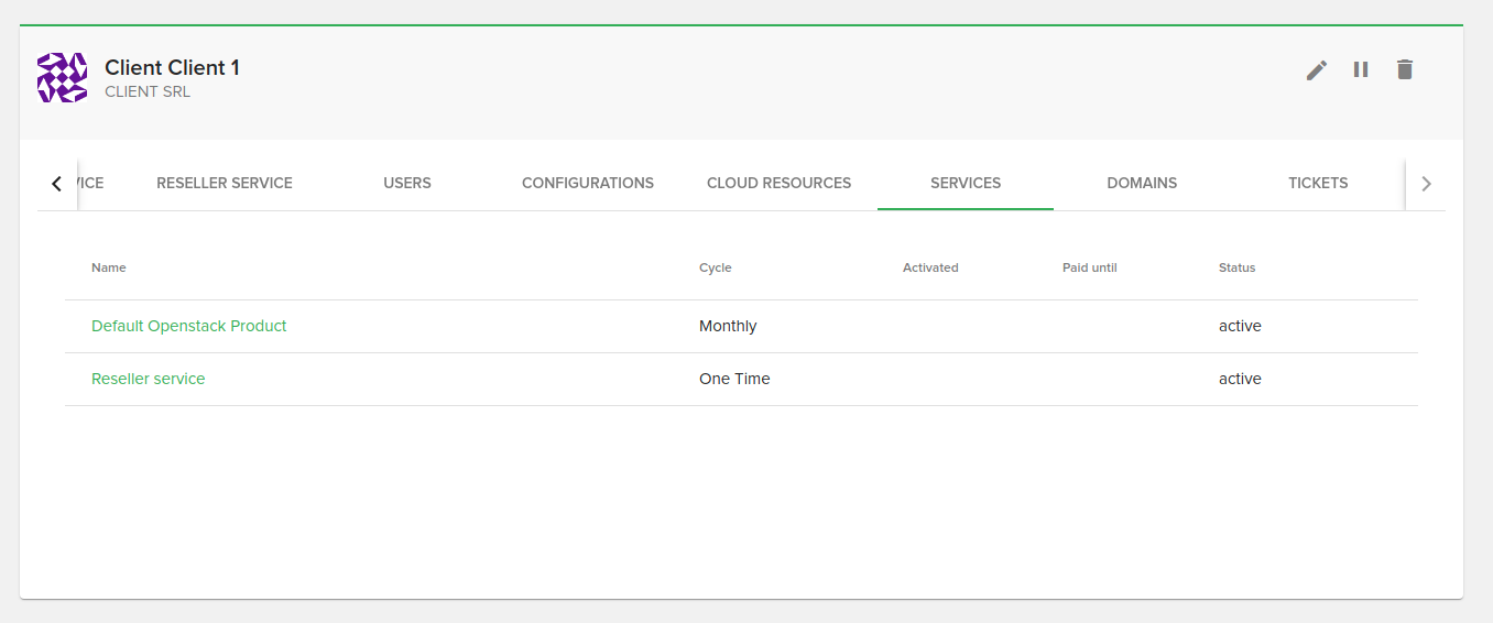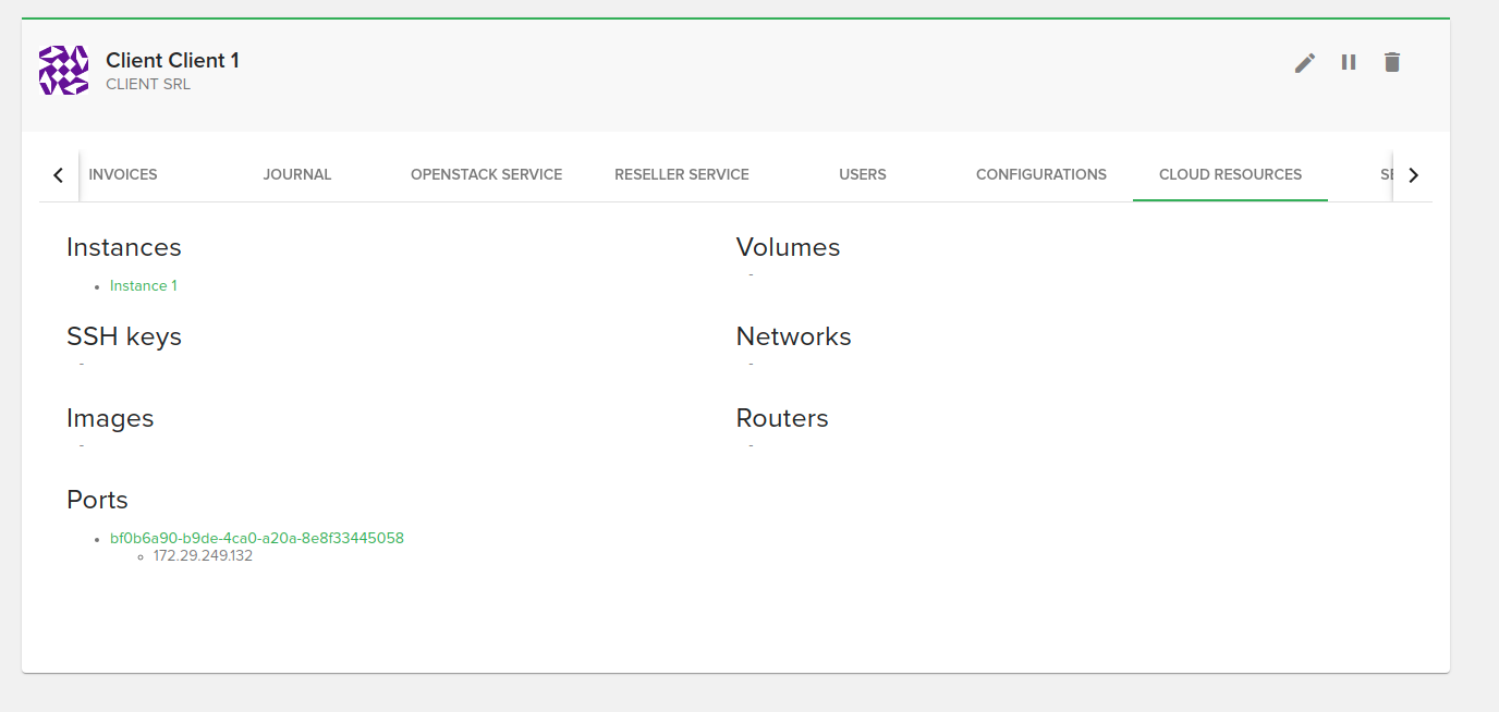 On the services tab you will be able to see the client’s services, including the Openstack service. Depending on your configuration you might see other services too.
