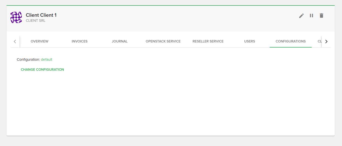 On the configurations tab you will be able to see the client’s Configuration. You will also be able to change the Configuration by clicking the “Change Configuration” button.