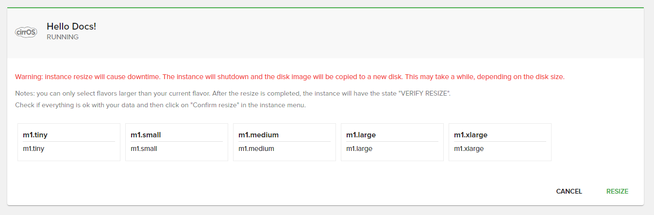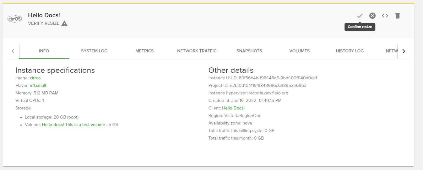 After resizing the instance, you will need to confirm the resize, by clicking on the Confirm resize button: