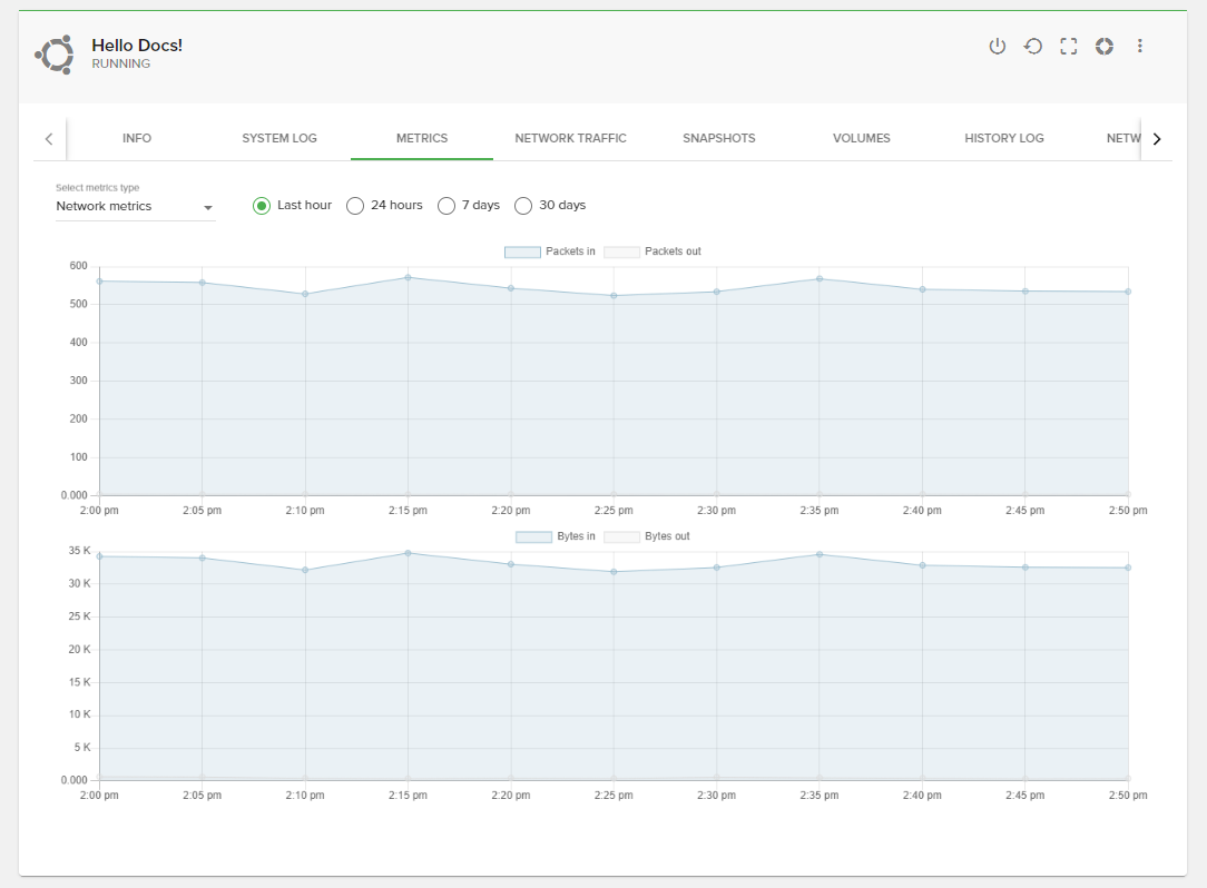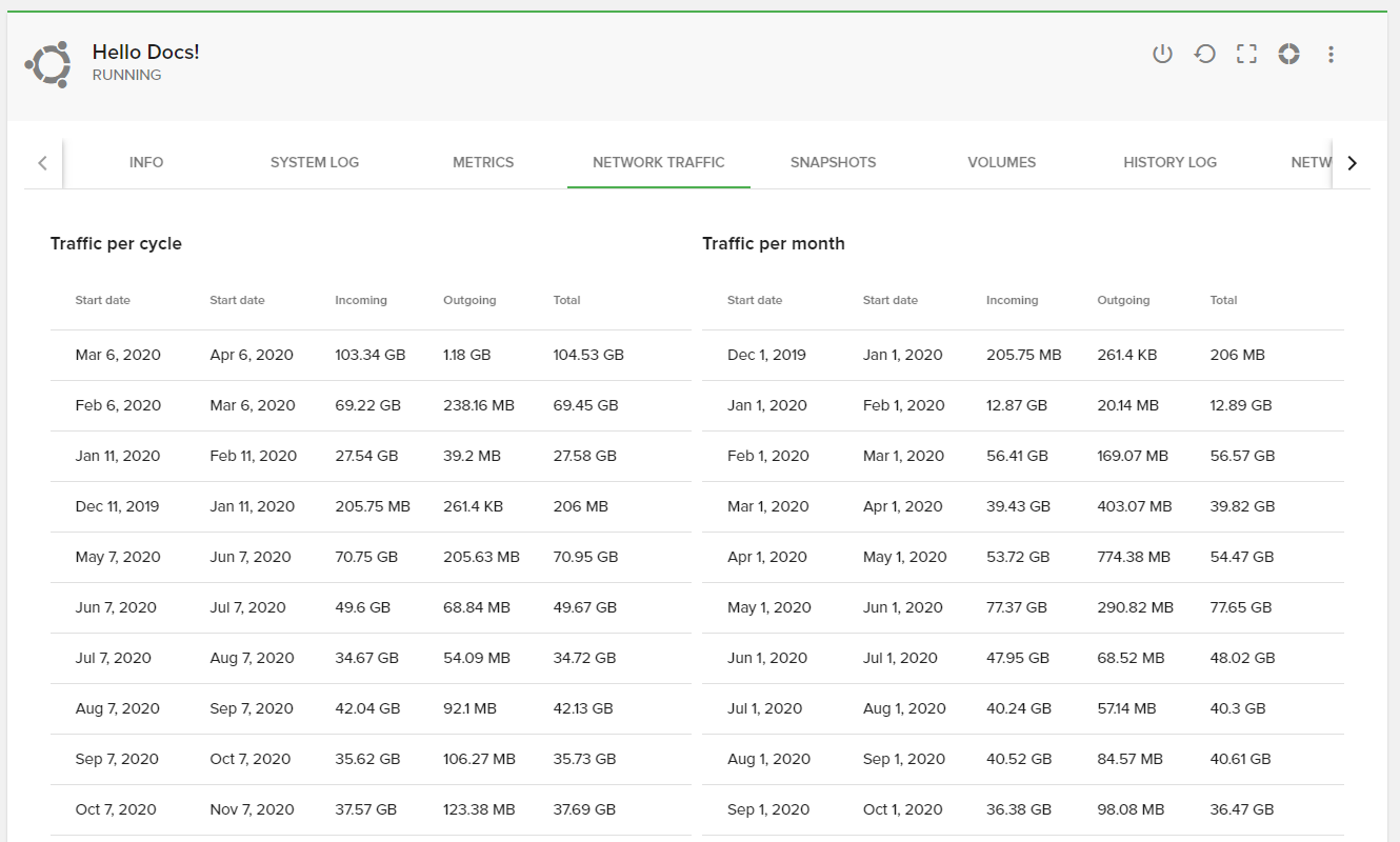 On the network traffic tab you will be able to see a detailed history of the network traffic for that instance: