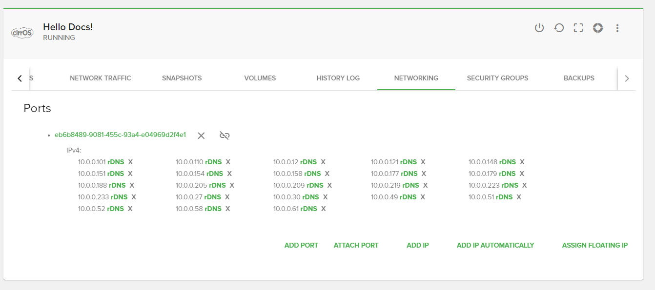 On the networking tab you will be able to see and manage the networking details of your instance.