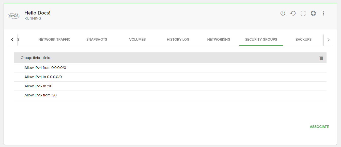 On the security groups tab you will be able to manage the security groups that are assigned to your instance.