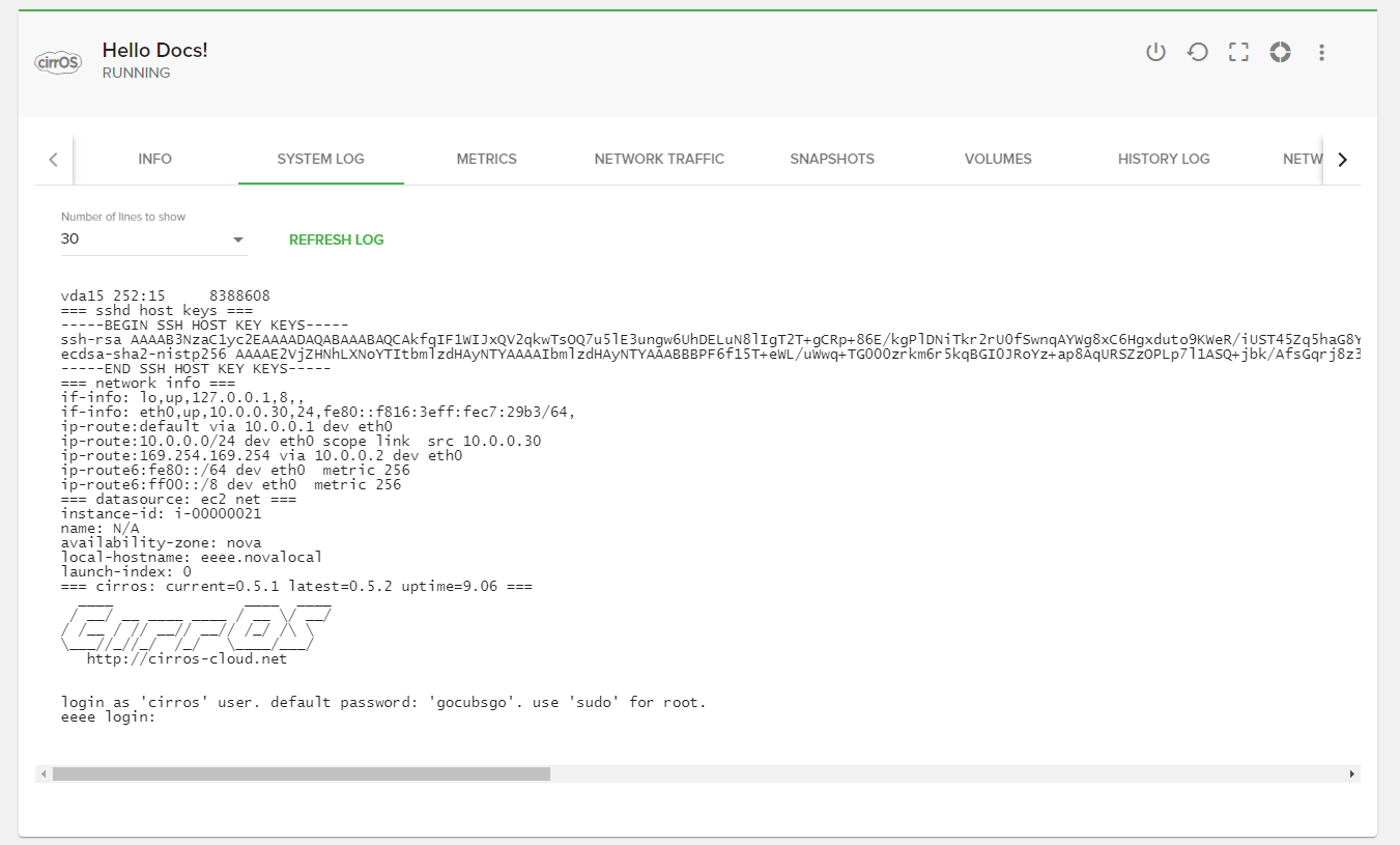 Note that the history log will contain all the actions that were done on the instance (including start, stop, resize, etc), and the history is pulled directly from OpenStack.