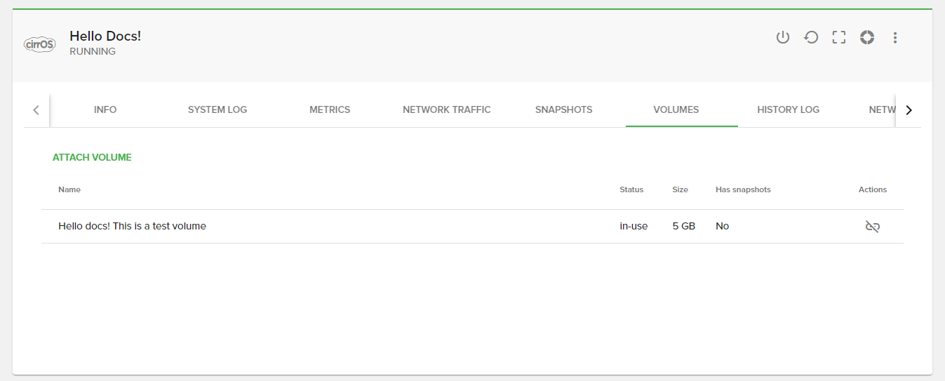 In order to attach a volume you will need to click on the Attach volume button. Upon clicking that button, you will see all the available volumes that were created in the same project as the instance was created.