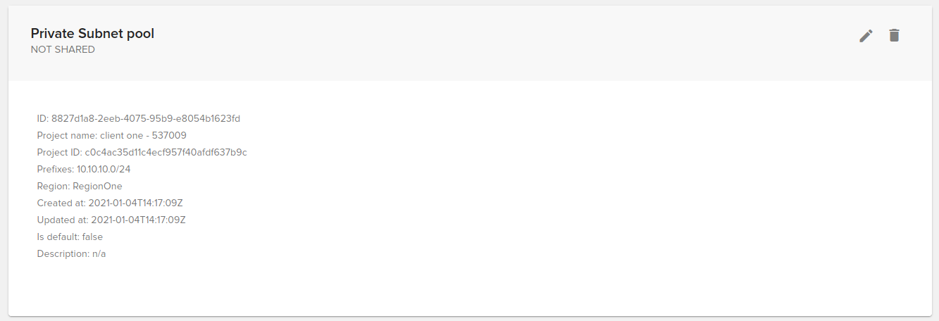Existing subnet pools can be deleted by pressing the delete button on the right side of the subnet pool.