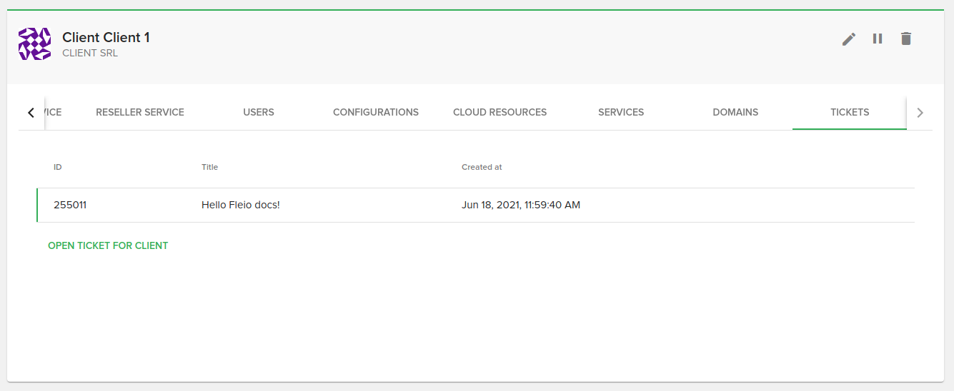 From this tab you can also open a new ticket for the client.