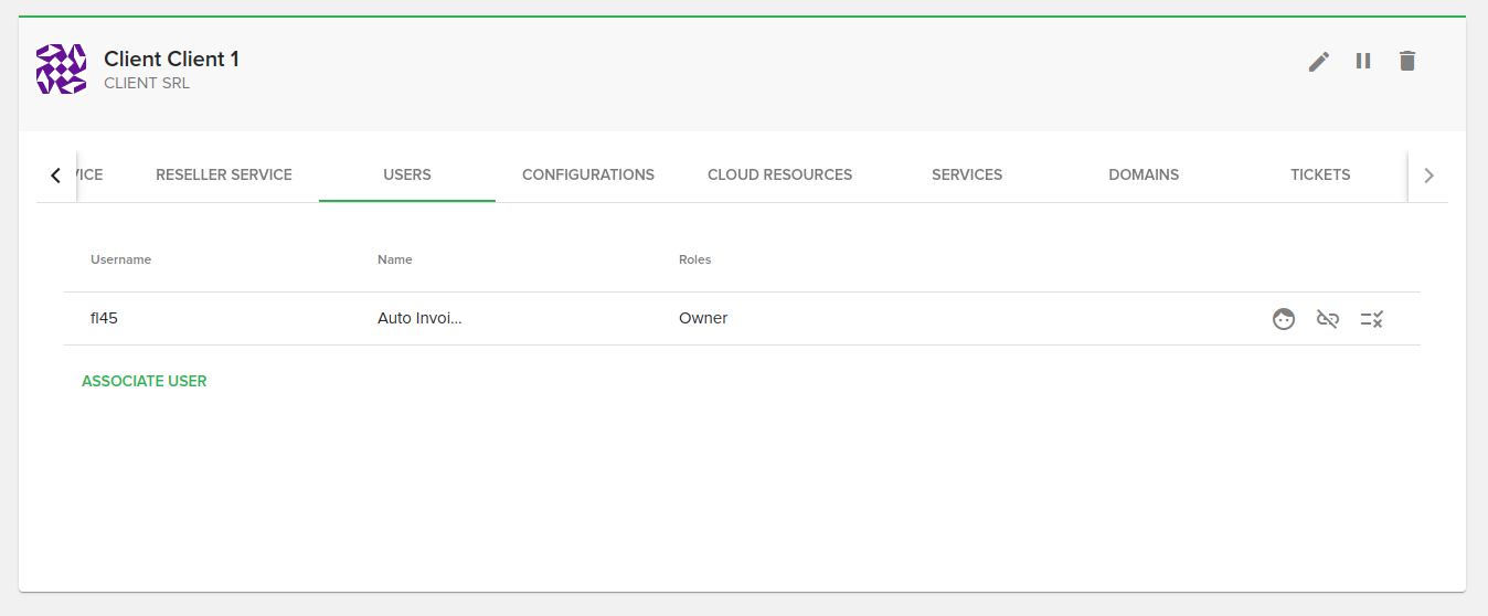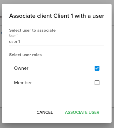 To associate a new user you need to click on the “Associate user” button, and select a new user from the available ones.